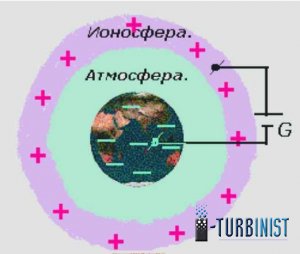 В результате наших действий мы подключили потребитель энергии к глобальному генератору электрической энергии. К отрицательному полюсу - Земле - мы подключились с помощью обычного металлического проводника (заземления), а к положительному полюсу - ионосфере - с помощью весьма специфического проводника - конвективного тока.