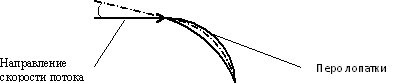 1.2. Процесс возникновения. При штатной работе нагнетателя поток газа имеет определённый расчётный угол атаки (i) на рабочие лопатки (рис. 1.1.). При таком угле входа потока в рабочее колесо обтекание лопаток нагнетателя происходит плавно, без завихрений.