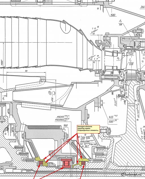 Данный ГТД проходил аварийный ремонт по причине разрушения сильфона с последующим разрушением контактного уплотнения на задней опоре компрессора высокого давления.