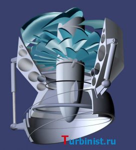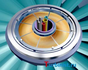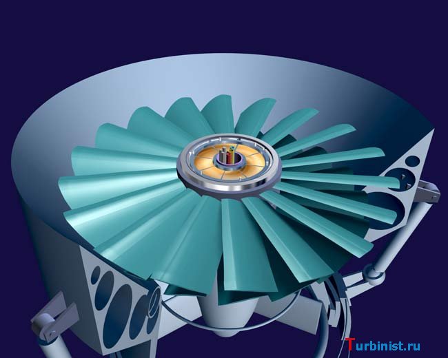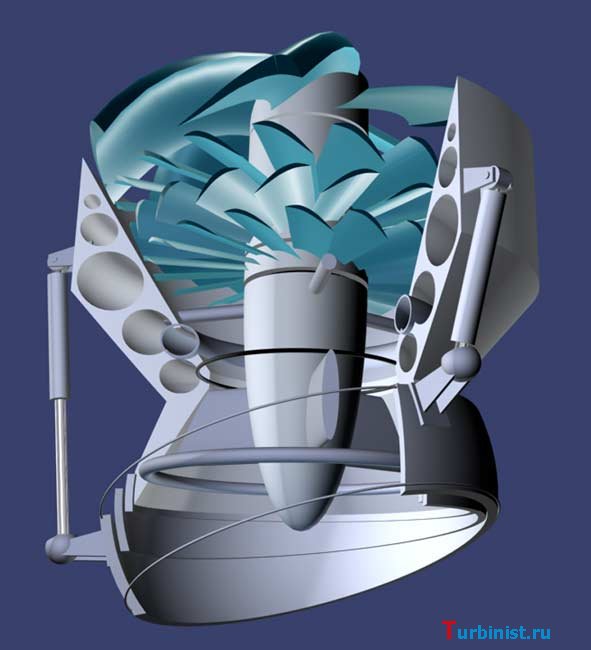 Турбина основных двигателей, вспомогательной вертикальной тяги и основной горизонтальной, при отклонении управляемого сопла