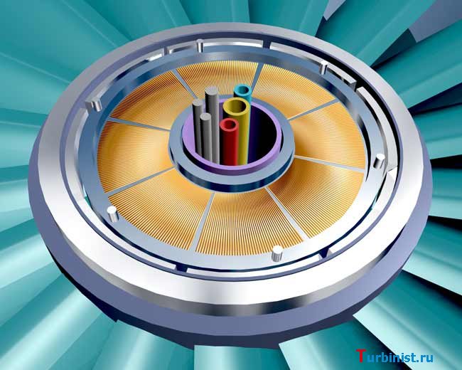 - компрессор с большим количеством прямых лопастей и разным направлением их вращения. Каждый блок лопастей компрессора, вращается своим независимым асинхронным электродвигателем, на сверх проводниковых обмотках, без применения каких либо редукторов, лопасти крепятся прямо на ротор электродвигателя, а статор остаётся в центре