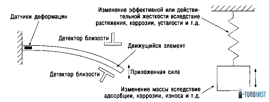 Рис. 4. Изменение резонансной частоты моста текущей жидкостью, ускорением, химическими реакциями и т.д.